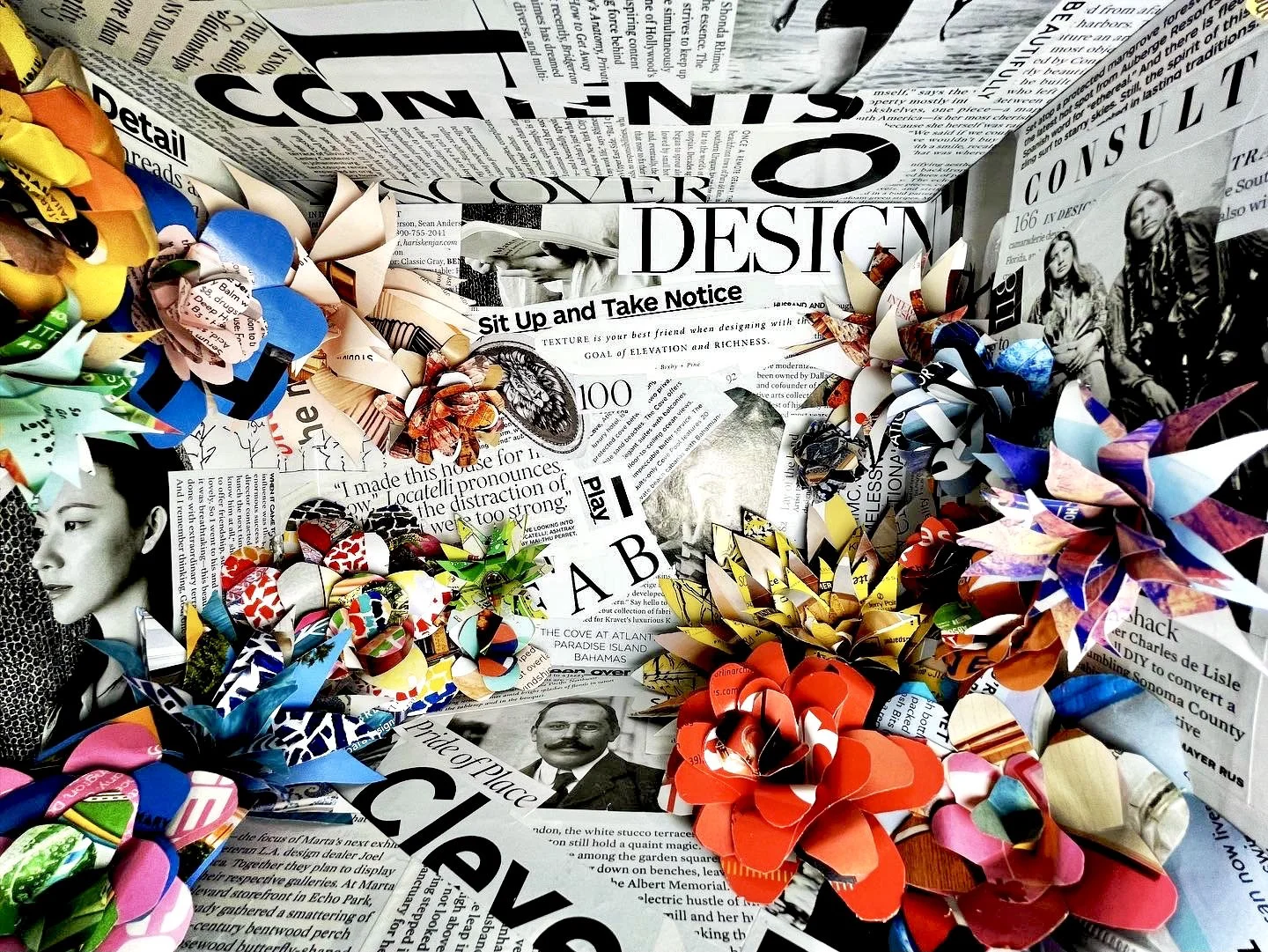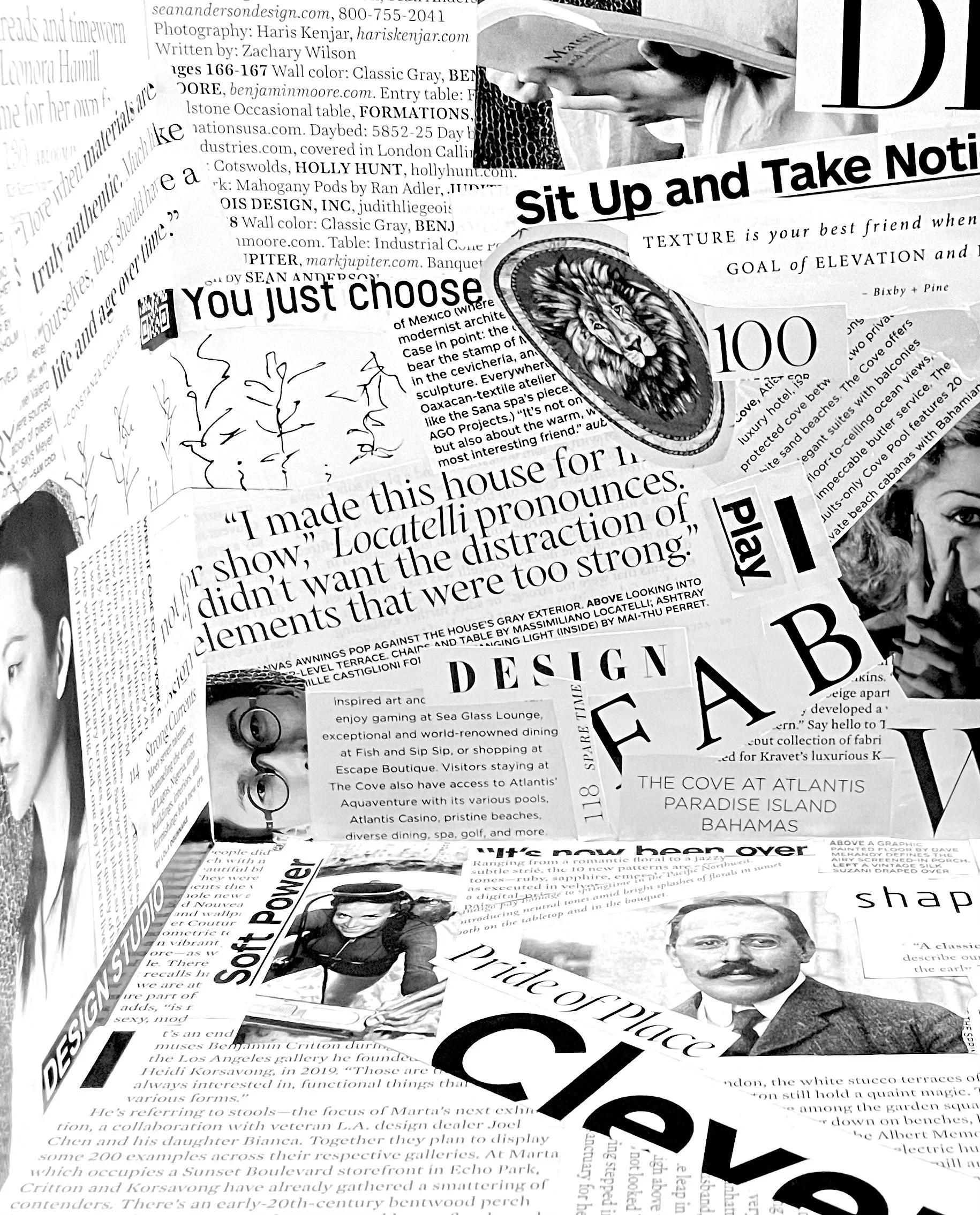 The end design idea actually came from things I was keeping in my backpack at the time. The inspiration was the scrap pieces of paper and sketches I keep in my bag plus the bright colors that made up my bag. At the time I was doing a lot of Mood boards in a collage style layout and was drawn to the texture it created and wanted to play with that in this design.